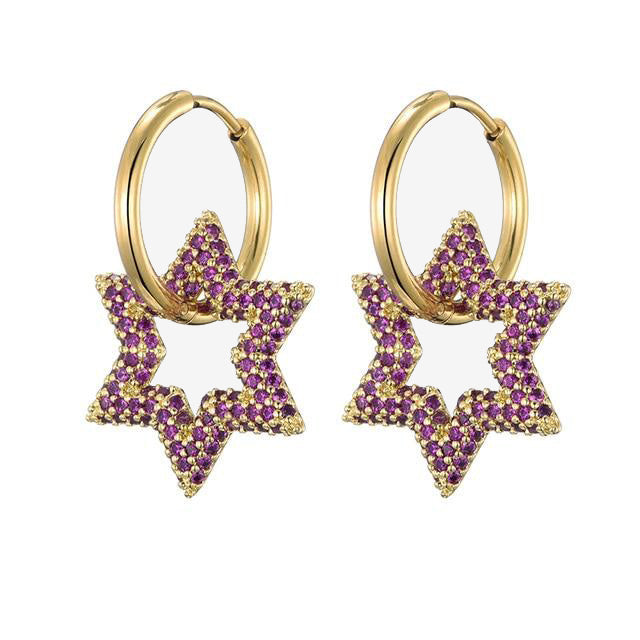 • Laden Sie das Bild in den Galerie-Viewer.trendy star charm round hoop earrings for women