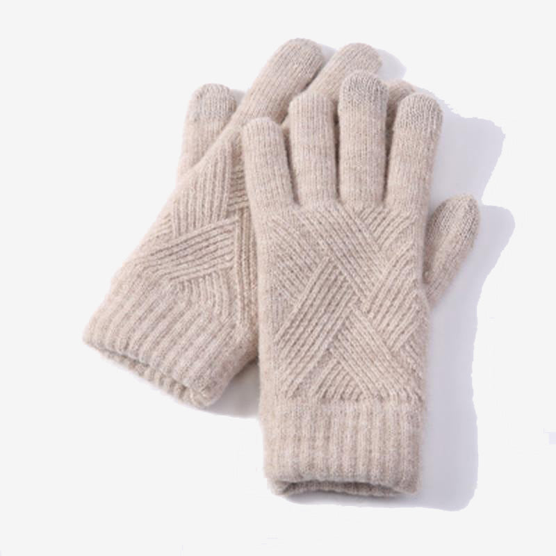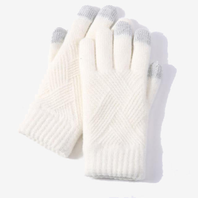 Female Winter Warm Knitted Full Finger Gloves